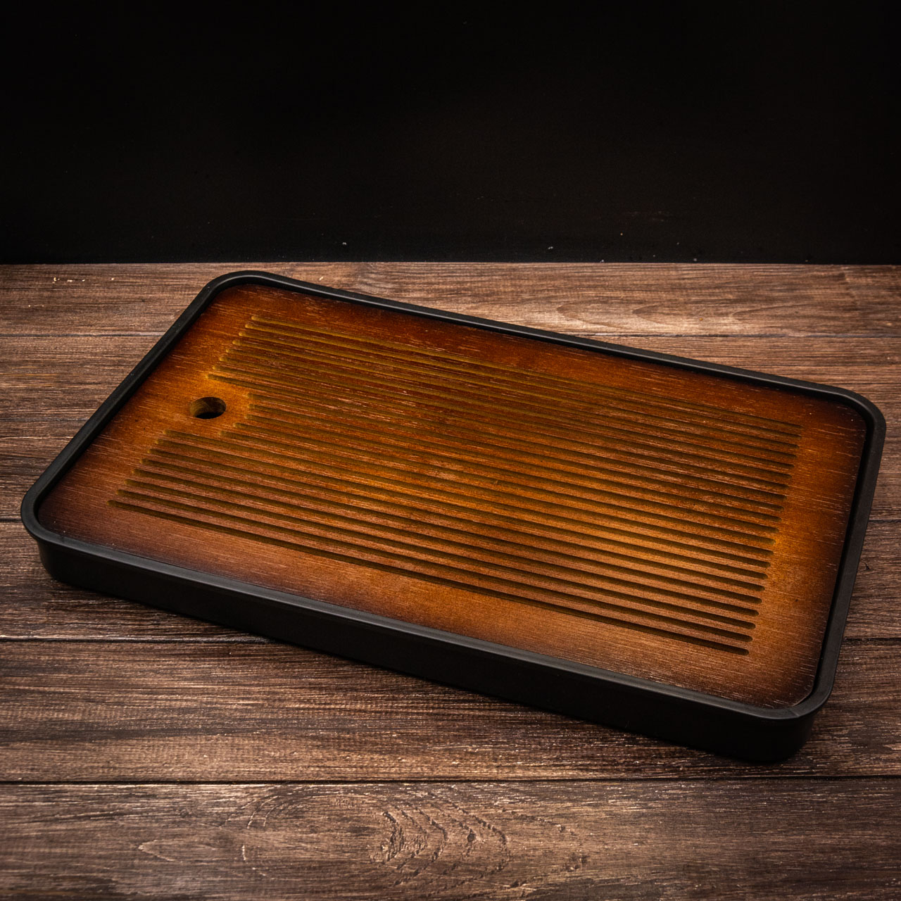 Чайная доска – незаменимый атрибут китайской чайной церемонии. На чабане удобно расставить посуду: гайвань или типод, чахай, пиалы, чайные фигурки. Еще на нее можно лить воду. Так поступают китайцы и верят, что больше прольется, тем счастливее будет семья.