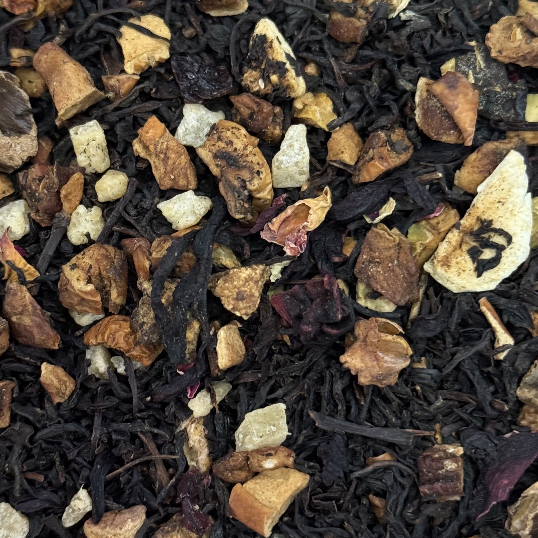 Смесь черного цейлонского чая с кусочками сливы, инжира и яблока, цукатами ананаса, гибискусом и лепестками розы.