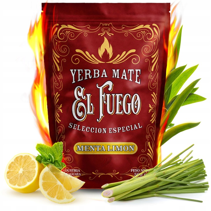 El Fuego Menta Limon – это освежающая смесь классического, очень дымного и интенсивно ароматного парагвайского сорта мате с мятой и лимоном.