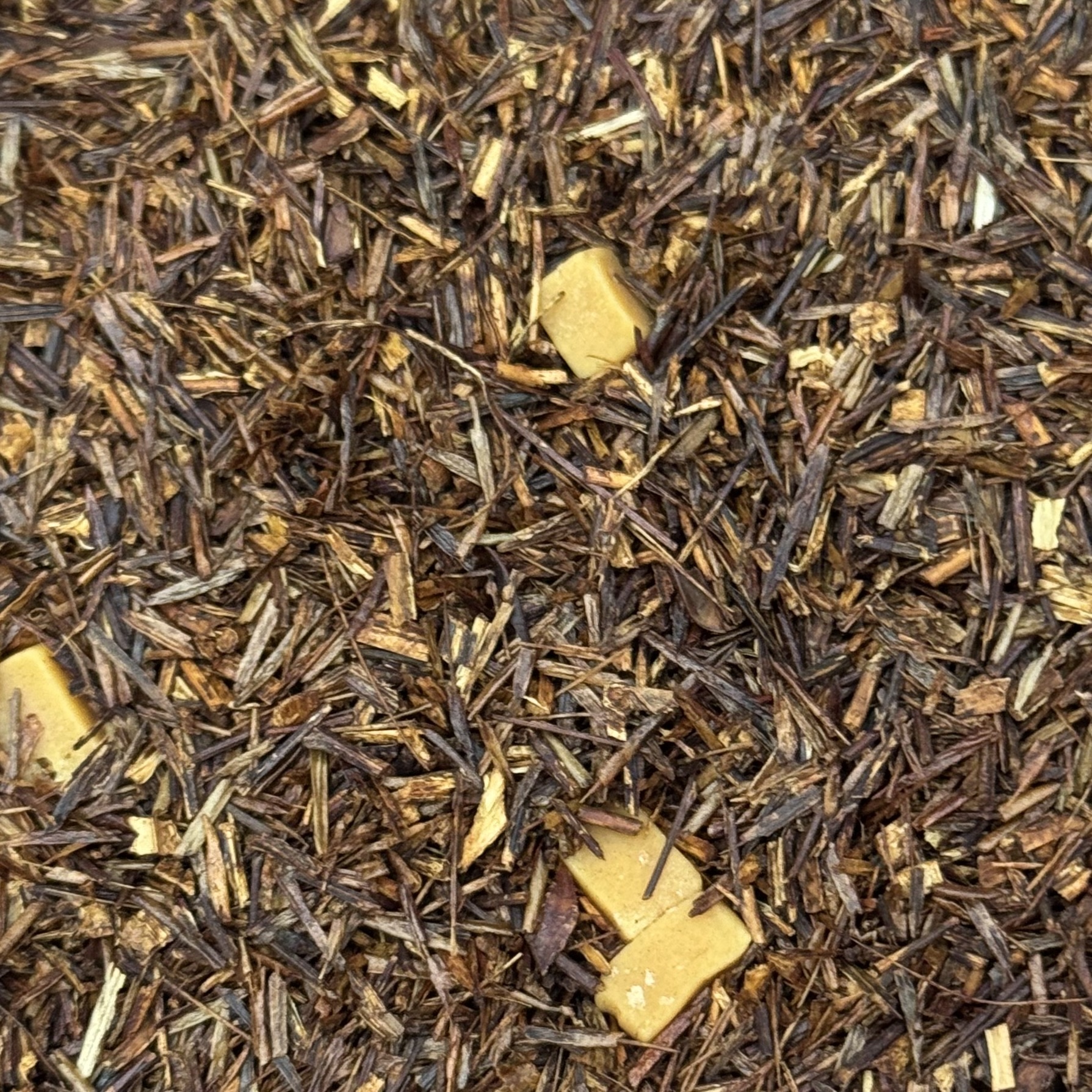 Смесь из листьев и стеблей кустарникового растения ройбуш, произрастающего в Южной Африке, с кусочками карамели.