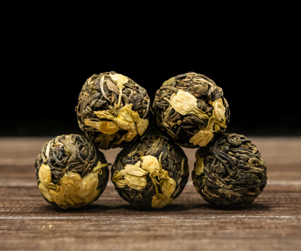 Великолепный зеленый чай с гор ИУ с жасмином вручную связан в виде прекрасного шарика.