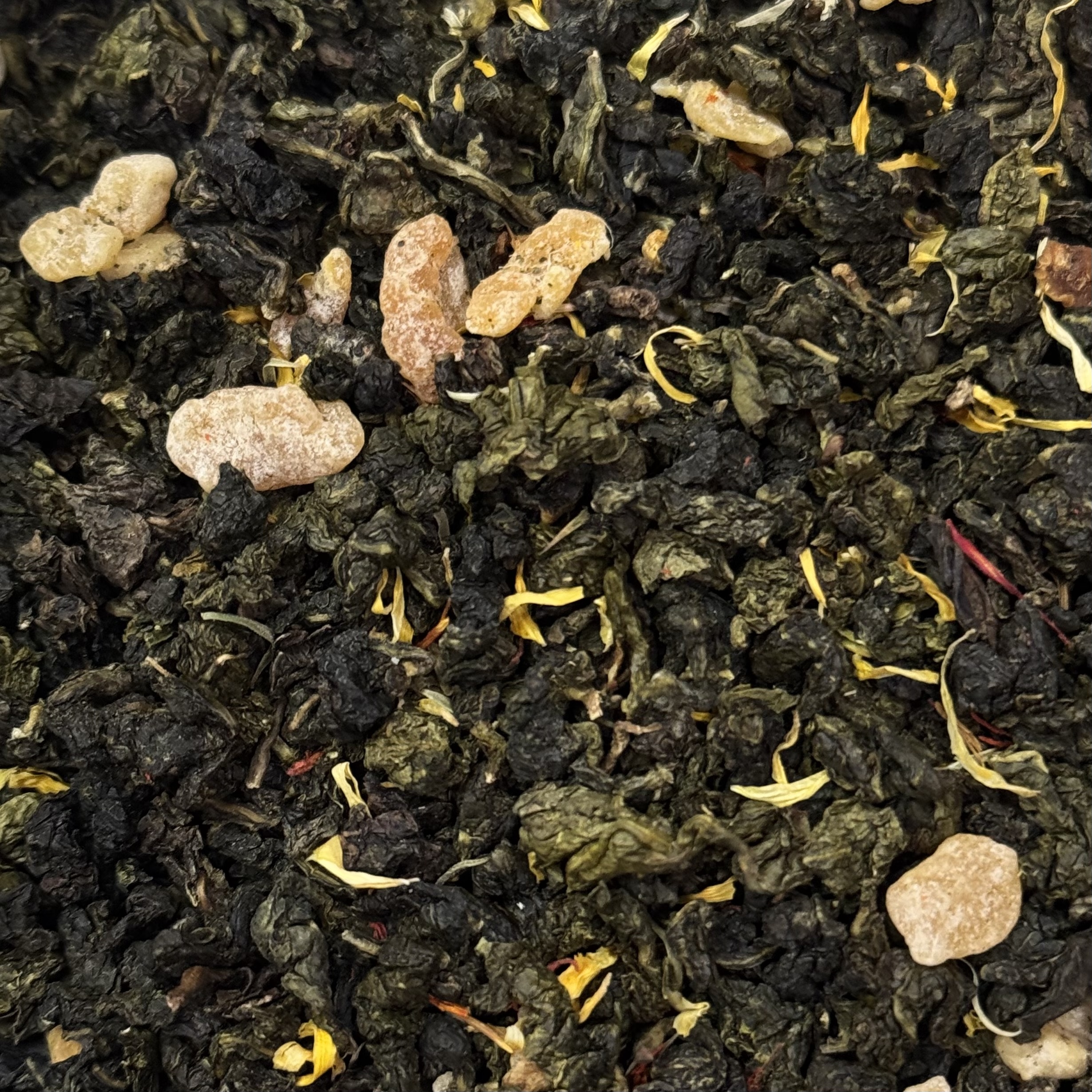 Крупнолистовой китайский чай улун высшего сорта с добавлением кусочков сочного манго, лепестков и цветов календулы и сафлора.
