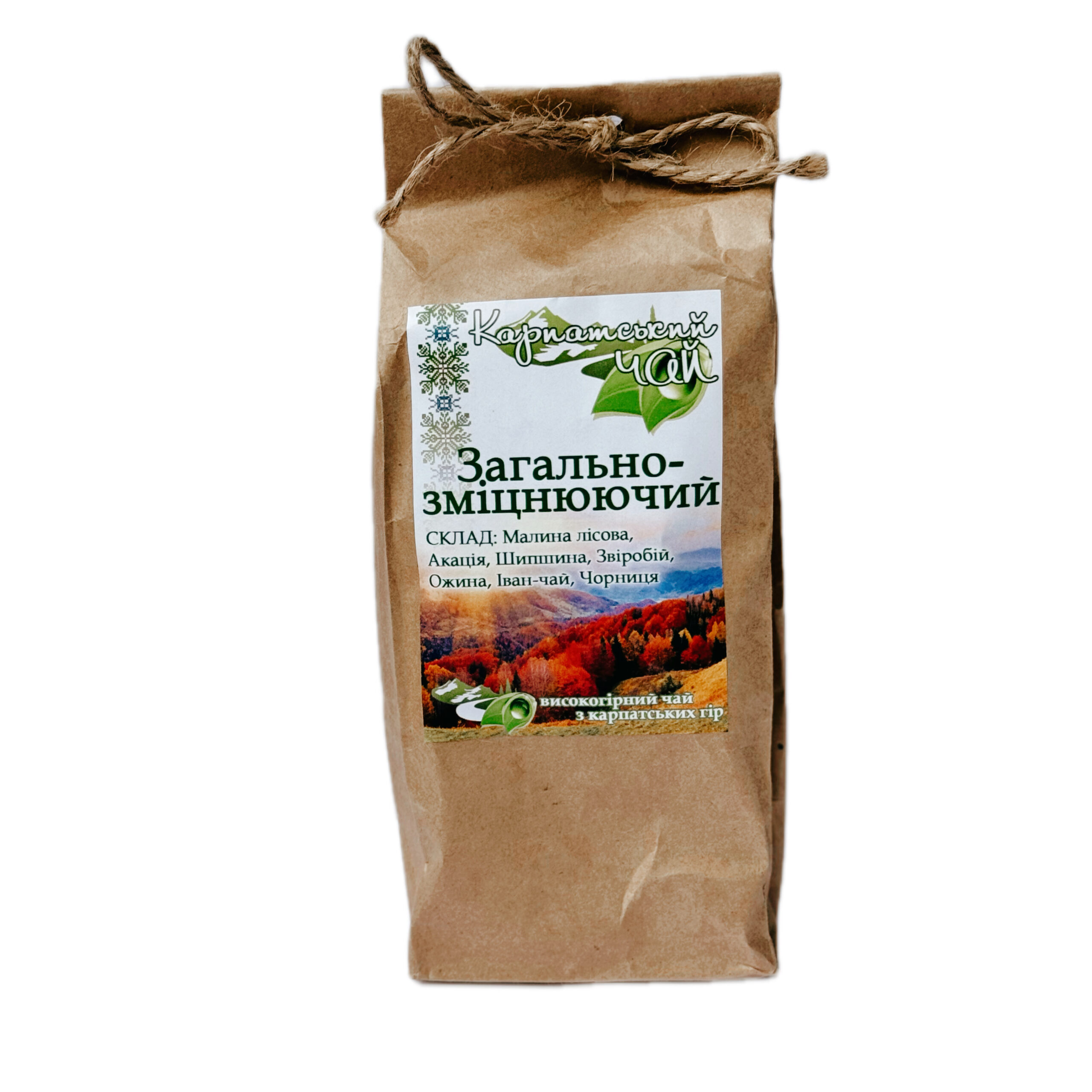 Карпатский травяной чай, в состав которого входит малина лесная, акация, шиповник, зверобой, ежевика, Иван-чай, черника. Оказывает тонизирующее и укрепляющее действие. В период простуд чай укрепит организм, поможет справиться с начинающейся болезнью.